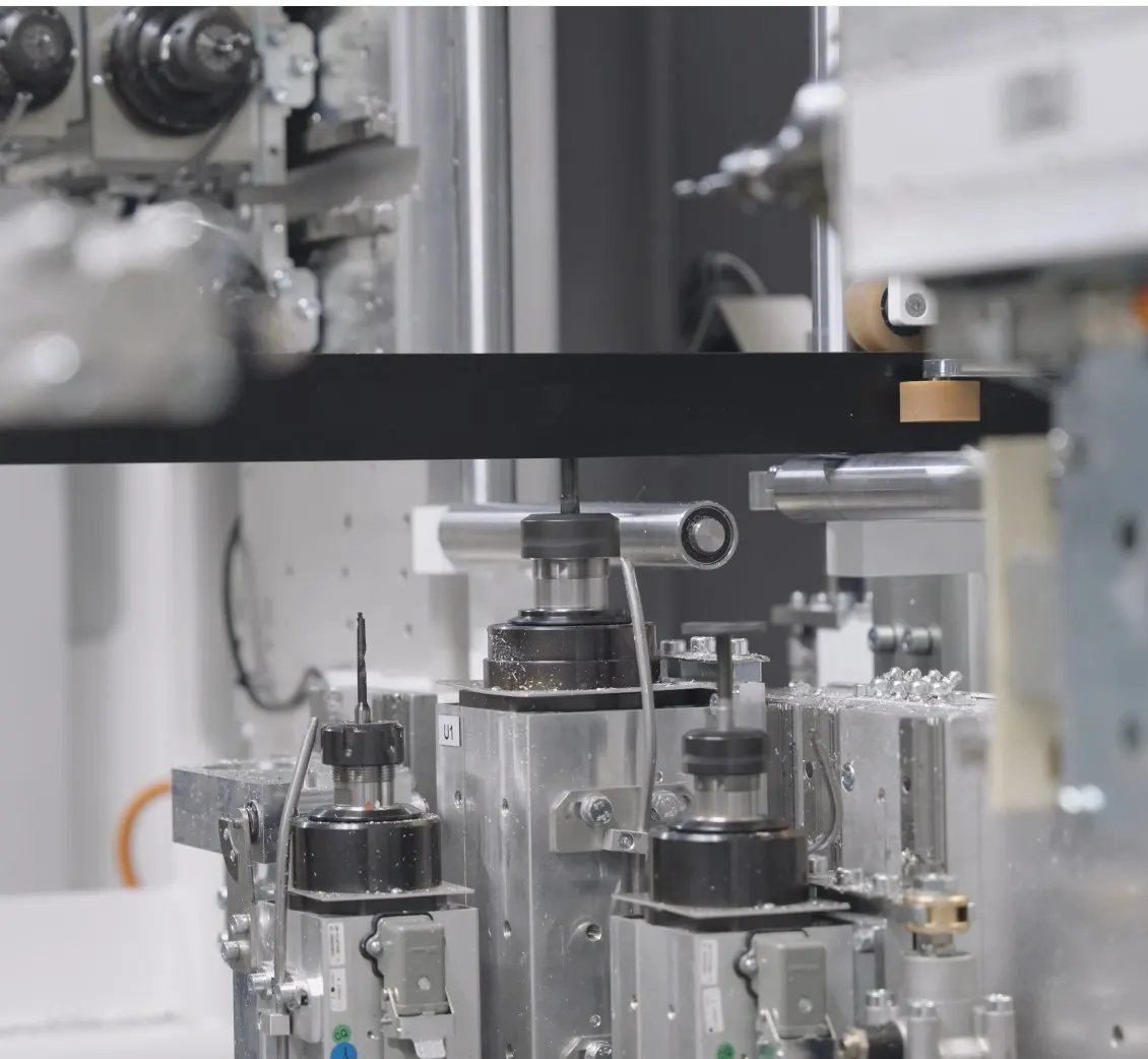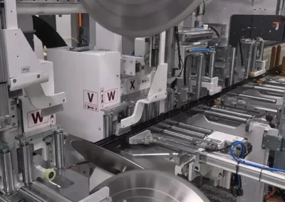 Possibilité de combiner plusieurs modules (différents groupes d’usinage et/ou débit), avec plan de stockage ou transfert intermédiaire, pour travailler en temps masqué et optimiser les cadences